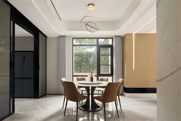 ★ 人造板材丰富的造型和色彩能够适配大部分的装修风格,可以搭配简约的餐椅和灯具,营造出时尚舒适的用餐环境。