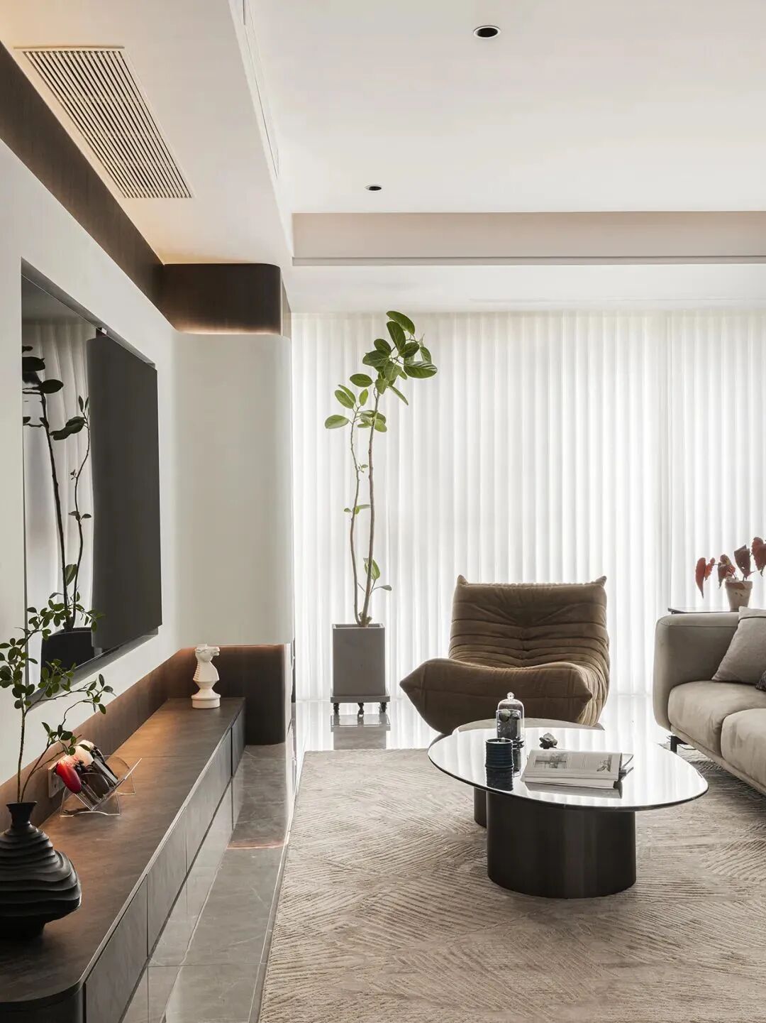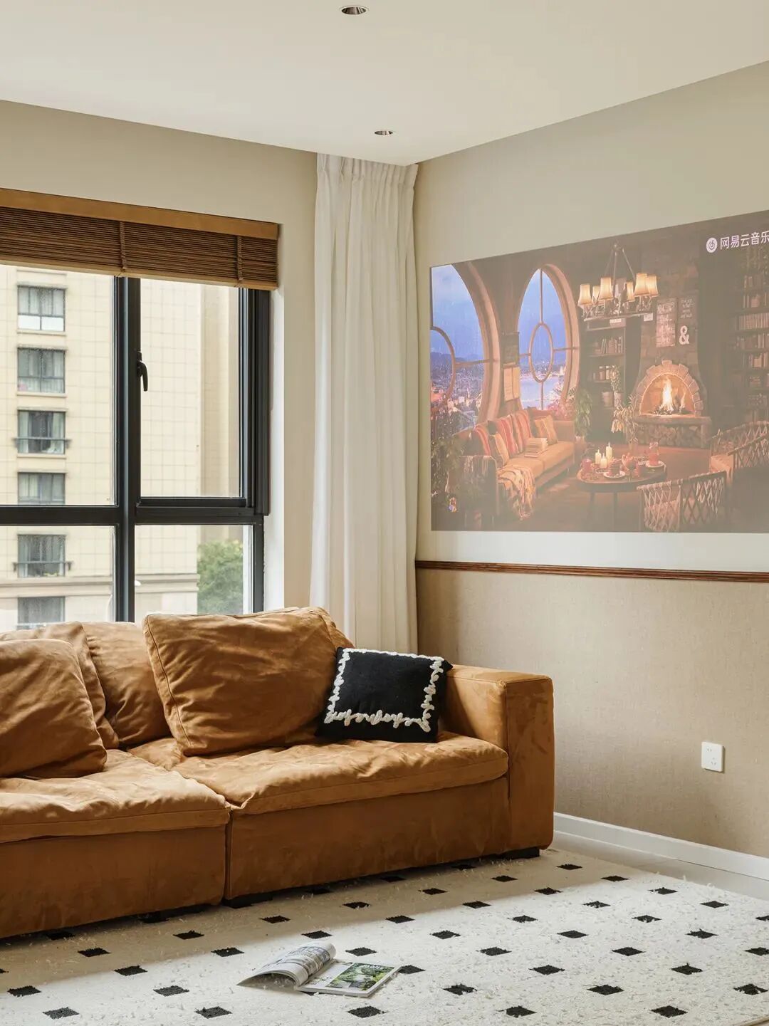 窗帘:客厅如无遮光需求,只装一层梦幻纱帘即可;有遮光需求可以增加一层遮光帘,窗帘褶皱建议选择2倍。