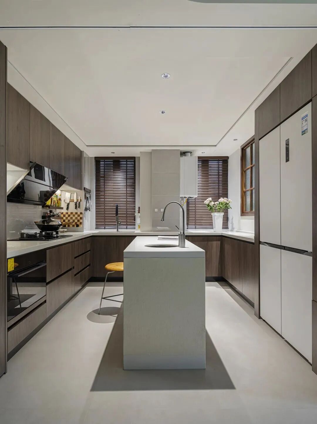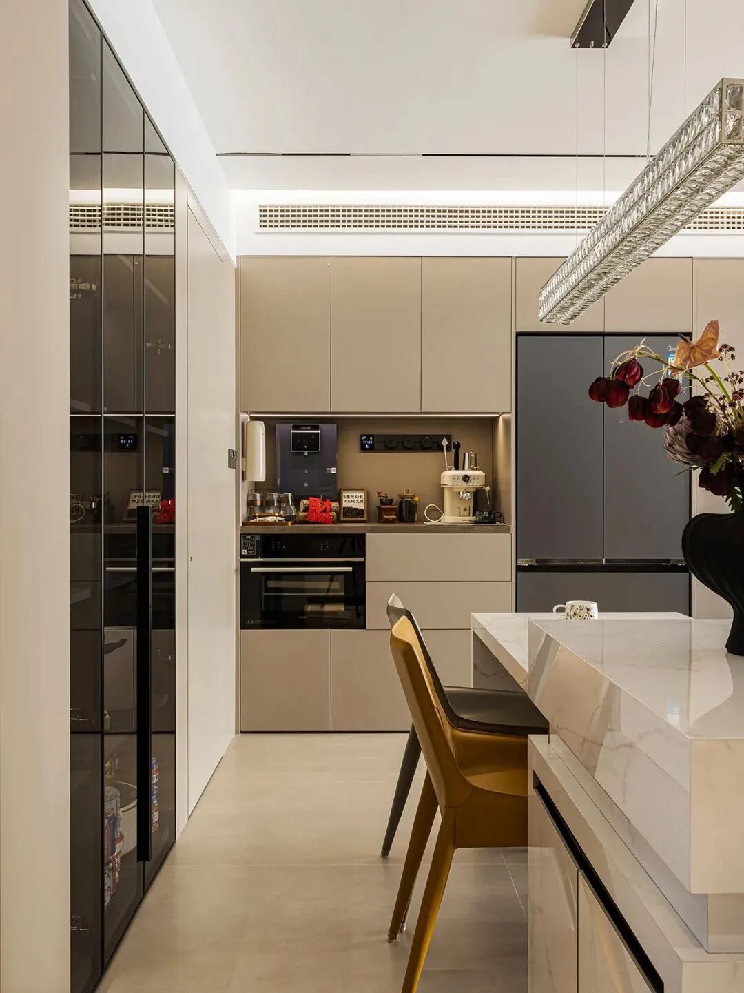 嵌入式冰箱能够巧妙地嵌入橱柜之中,与周围柜体完美融合,形成一个整齐划一的整体视觉效果。