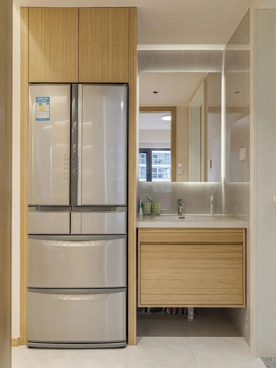 另外还需要提醒大家,如果确定要安装嵌入式冰箱,那么最好在开始装修之前就买好冰箱,根据冰箱的尺寸去定制嵌入的尺寸,确保冰箱能够顺利嵌入安装。